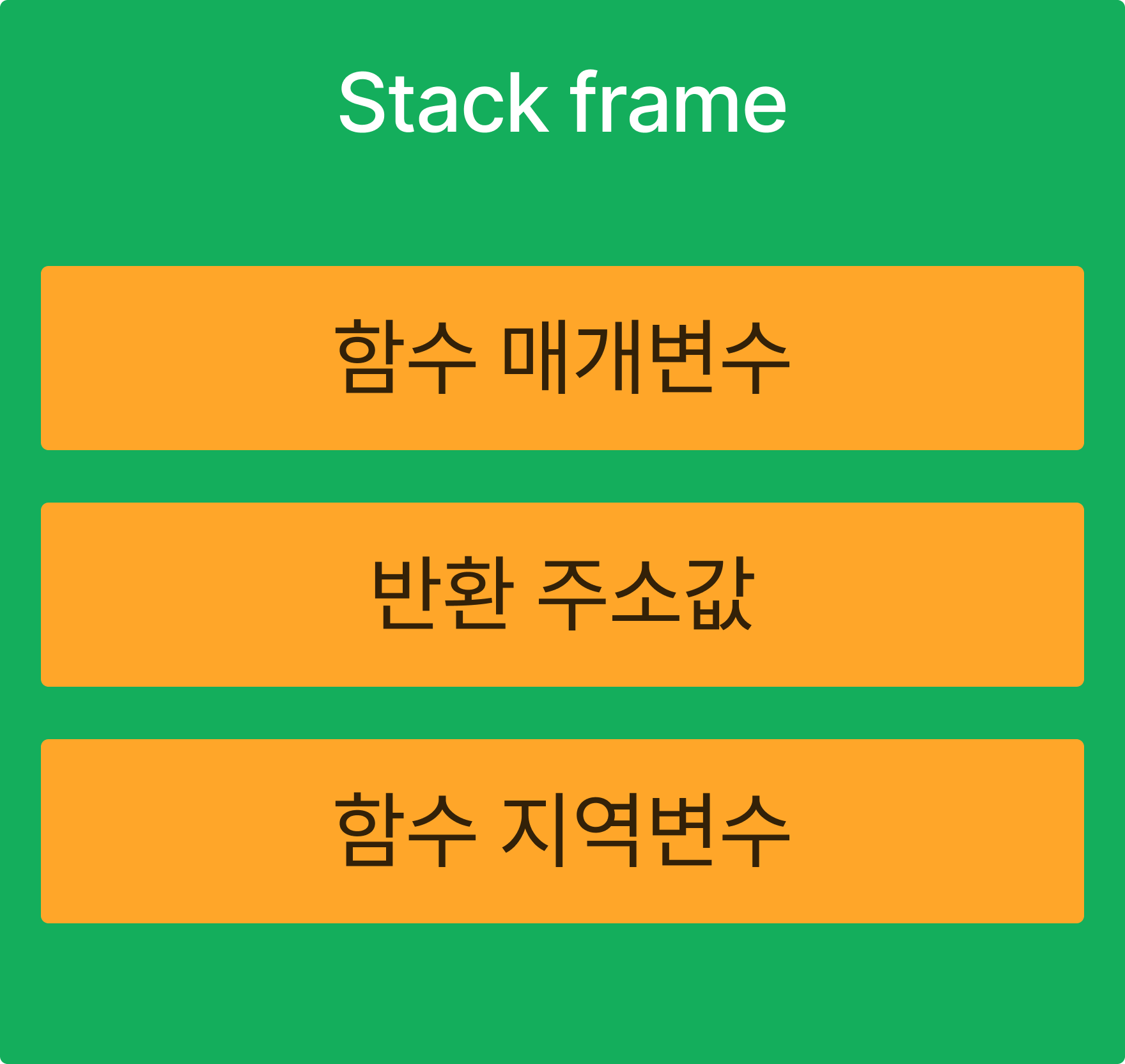 - 함수가 실행되면, 함수별로 스택 프레임이 생성된 후 → Stack 영역에 저장된다.