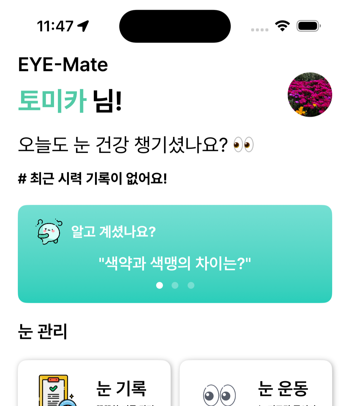 - 바로 정보를 찾을 수 있는 장점으로, 홈화면에서 빠르게 보여줘야하는 특성을 생각해 사용했다.
