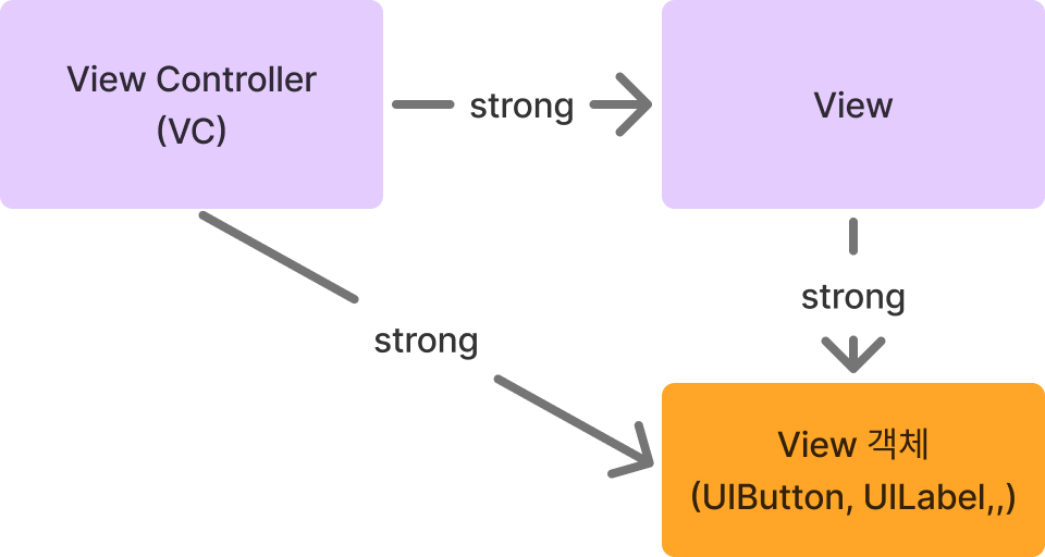 마지막으로 VIew Controller도 View 객체를 강하게 참조하는데…
