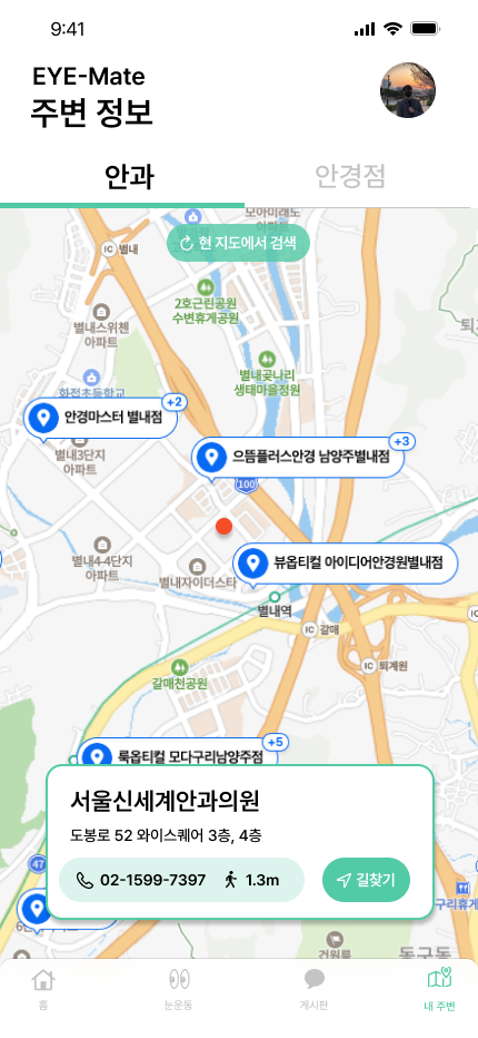 EYE-Mate 프로젝트에서 사용하는 내주변 안과, 안경점 탐색을 담당하던 Naver Search Place API 쿼리가 서비스를 중단하면서.. 어떻게 할까 고민하다가 Kakao Local API가 주변 장소 탐색을 지원하고 한번에 15개의 장소를 반환할 수 있다는 것에 카카오 API를 선택했다.